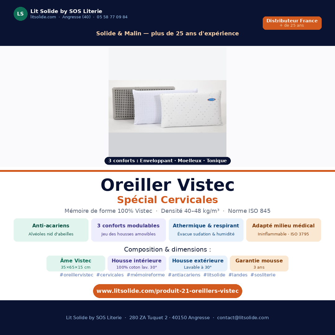 Dimensions de l’âme de l’oreiller : 35x65x15